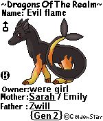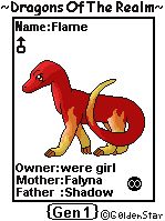 Flame: we have an another new member today! Its a little baby dragon from Fohamas clan! His name is Evil Flame, he will go though warrior training! and when he grows up he'll be the second clan warrior!