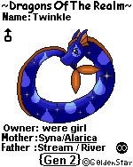 4th September 2004: we got 2 new members, one is Called Olympiada, she is an olympic ice dragon, she was made the clans warrior, the other is called Sage a blue wind dragon.